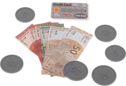 A készlet különféle gyerekpénzeket, hitelkártyát és sokszínű áruválasztékot tartalmaz, ami valósághűvé teszi az üzleti játék élményét.