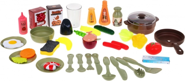 42 darab különféle kiegészítő, beleértve tányérokat, tálakat, evőeszközöket és szimulált ételeket, végtelen játéklehetőségeket kínál.