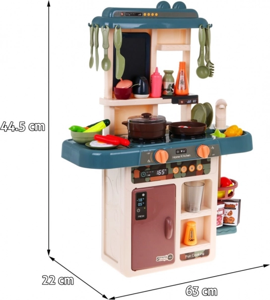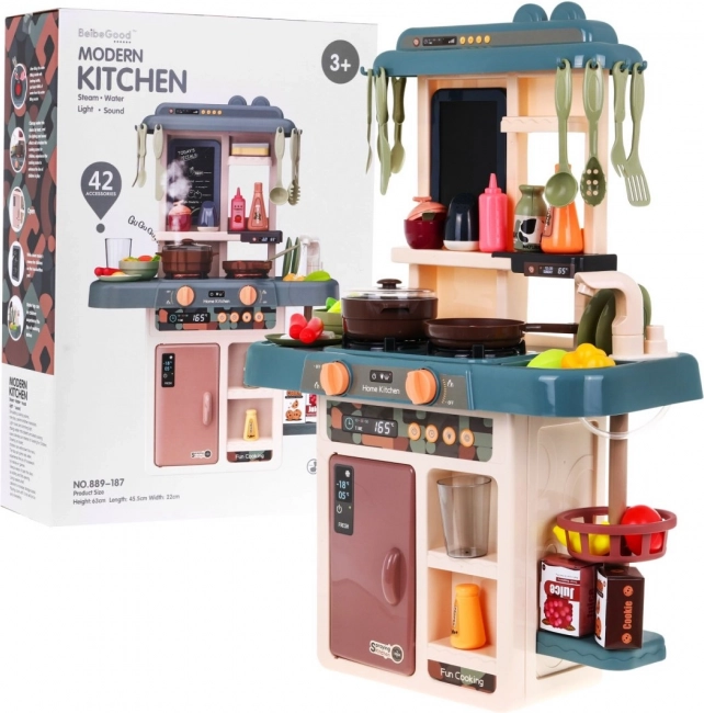 Ez a konyha ellenállhatatlan társa minden kis szakácsnak, köszönhetően a realisztikus funkcióknak. Megvilágított főzőlapok realisztikus sütési és főzési hangokkal, csap igazi vízzel és gőz funkcióval az autentikus játékélményért.