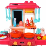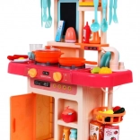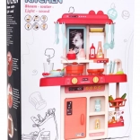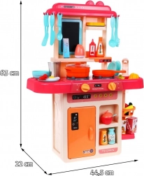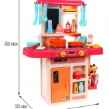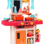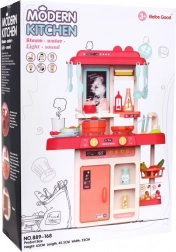 A gyerekkonyha Modern Konyha lehetőséget nyújt a gyerekeknek, hogy megéljék az igazi konyhai élményt valós fényekkel és hangokkal. Mozgatható elemeket tartalmaz, mint forgatható gombok és nyitható hűtőszekrény. A kis szakácsok értékelni fogják a gőz kibocsátó funkciót és a feljegyzések rögzítésére szolgáló jegyzetelőt.