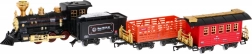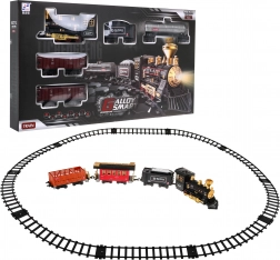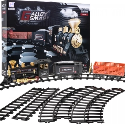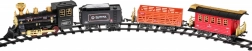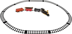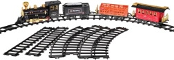 A nagy gyermekvasúti készletünk a legkisebb vonatrajongóknak készült. A mozdony 22 cm hosszú és többféle kocsival érkezik: személy-, szén- és állatszállító. A pálya elliptikus alakú, 143 cm x 106 cm méretű és könnyen összeállítható, köszönhetően a biztonságos csatlakoztatható elemeknek.