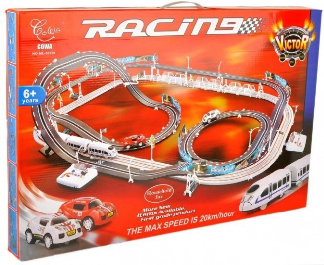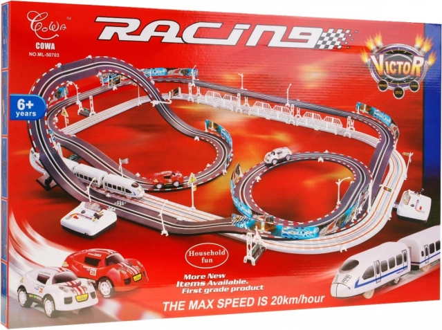 Ez az óriási 2 az 1-ben versenypálya izgalommal tölti meg az otthonát. Kifejezetten 6 évesnél idősebb gyermekek számára készült, éles kanyarokkal, szlalommal és egyenes szakaszokkal, amelyek maximális szórakozást biztosítanak. Akár 20 km/h sebességgel az autók és a vonatok ütközés nélkül versenyezhetnek a pályáikon.