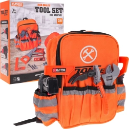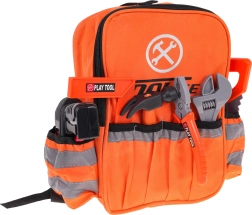 Narancssárga hátizsák több zsebbel a játékok tárolására. Könnyen hordozható és alkalmas játék munkás szerephez.