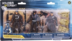 Akciódús katonai figura szett kis stratégiáknak. A csomagban 3 részletgazdag katonafigura (11 cm), hozzájuk felszereléssel ellátott hátizsákok és különféle fegyverek várják a végtelen játékszcenáriókat és a fantázia fejlesztését.