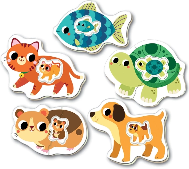 Kifejezetten 12 hónapos kortól tervezett puzzle, amely lehetővé teszi a képzelet és a kíváncsiság fejlesztését. Öt rejtvényt tartalmaz, 2-4 darabbal belső állat-betétekkel: