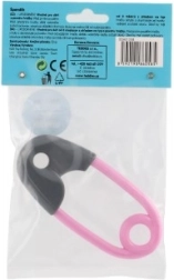 A biztosítótű csörgőt olyan műanyagból készítették, amely biztonságos a gyermekek számára, és könnyűségét egyszerű kezelhetőséget biztosít.