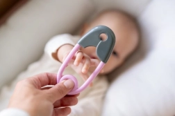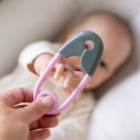 A biztosítótű csörgő klasszikus játék a gyermekek számára, amely kiválóan alkalmas a baba első próbálkozásaira a játék megfogására. Ergonomikus kialakítása könnyű megfogást tesz lehetővé, és könnyedsége miatt a csörgő kedvelt társaság már születéstől fogva.