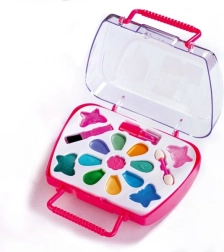 A játékos kozmetikai szett szórakozást nyújt és elősegíti a kreativitást minden kislánynak. A szett különféle színes elemeket tartalmaz a biztonságos sminkelési kísérletezéshez.