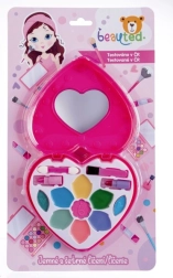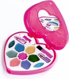 A kozmetikai készlet átlátszó fedelű szívalakban készült tükörrel, amely inspiráló kreativitást és stílusos élményt nyújt.