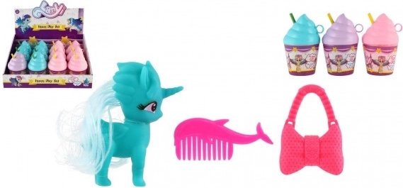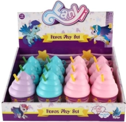 Unikornis fésülhető műanyag kiegészítőkkel fagylaltpohárban, 2 szín, 8x12 cm