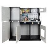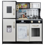 Az XL gyermekkonyha minőségi fából (MDF) készül, részletgazdag kivitelben és nagy tartóssággal. A LED lámpa a szekrény alá, a szekrénybe vagy a sütőbe helyezhető, így a gyerekek félhomályban is átélhetik az igazi főzés hangulatát. A tűzhely forgatható gombjai valósághű „kattanó” hangot adnak, ami még jobban bevonja a játékba.