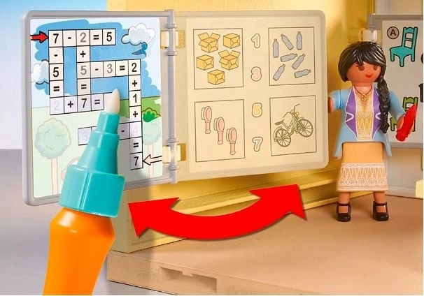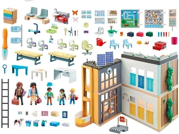 Ez a készlet valósághű iskolai környezetet teremt, ahol a gyerekek a mindennapi tanórai jeleneteket játszhatják el. A interaktív tábla és a festő/rajzoló lapok révén a tanulás szórakoztatóbb, és támogatja az együttműködést és a kommunikációt.