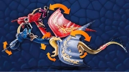 A sárkánynak mozgatható a lába, a feje és a nyaka, nagy szárnyai pedig minden irányba forgathatók. A levehető nyergeknek köszönhetően a hősök kényelmesen nyeregbe pattanhatnak és akcióba lendülhetnek. A két fej mindegyike jégnyilat tud kilőni – a nyilat a száj kinyitásával, az áll alatti kar meghúzásával helyezheted be, és ugyanígy indíthatod a kilövést is.