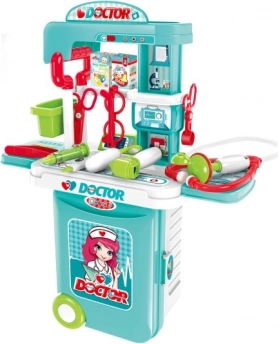 Az Orvosi készlet 3 az 1-ben tökéletes játék a kis orvosok számára, akik szeretnének betekintést nyerni az egészségügyi ellátás világába. Tartalmaz egy praktikus kerekes bőröndöt és különféle eszközöket az orvosi kezelésekhez.