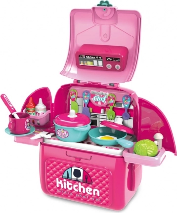 A mi Konyhai szett hátizsákban a gyerekeknek számtalan órányi szórakozást kínál, lehetővé téve számukra a mindennapi tevékenységek utánzását. Ez a praktikus hátizsák, amely könnyen asztali konyhává alakítható, ideális otthoni és úti játékhoz egyaránt. Számos kiegészítőt tartalmaz, amelyek megkönnyítik a főzést és sütést. Ez a játékos készlet támogatja a szociális készségek és a kreativitás fejlesztését. Kompakt méretének köszönhetően (24×15×27 cm) könnyen hordozható, és a gyerekek mindig magukkal vihetik.
