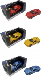 A 16,5 cm-es lendkerekes autó kicsi és nagy versenyzőknek egyaránt örömet szerez. Könnyű irányítás, egyenletes haladás és három vonzó szín – piros, sárga és kék.