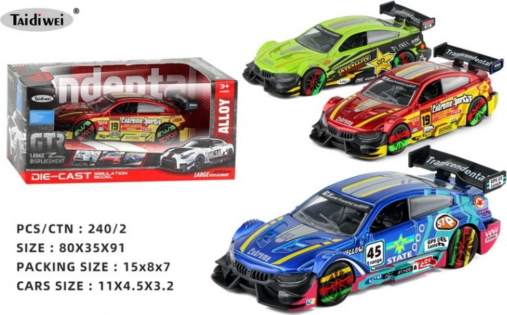 Fém versenyautó 11 cm, három színváltozat. Ideális játék könnyű és gyors vezetéshez.
