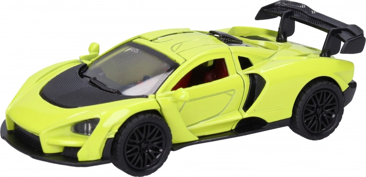Ez a fém autó Supersport 12x5x3 cm-es méretben ideális játék a kis autórajongók számára. Visszahúzós meghajtás és nyitható ajtók biztosítanak nagyszerű szórakozást és realizmust.
