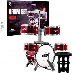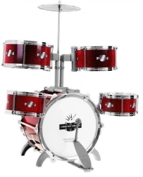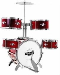 A készlet tartalmaz mindent, amire a gyermeknek szüksége van a zenélés elkezdéséhez – öt dob együttes tányérral és dobverőkkel.