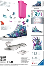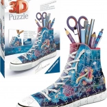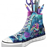 Fedezze fel a szórakoztató és praktikus 3D puzzle-t, amely összeállítás után egy stílusos tornacipőt formáz Varázslatos tengeri sellő motívummal. A készlet masszív műanyag elemeket tartalmaz, amelyek ragasztó nélkül tökéletesen illeszkednek, a kész alkotás pedig egyedi ceruzatartóként is használható tollakhoz, ceruzákhoz vagy ecsetekhez. Ideális ajándék kirakórajongóknak és design kiegészítők kedvelőinek is.