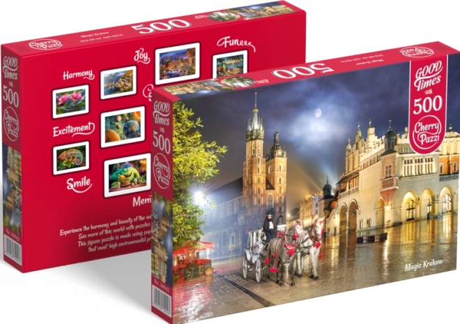 Merüljön el Krakkó történelmi városának festői szépségében ezzel a részletes puzzle-lel. Varázsolja elő a város gyönyörű dekorációját 500 precízen kidolgozott darabbal, amelyek nemcsak szórakozást, hanem esztétikai élményt is nyújtanak.