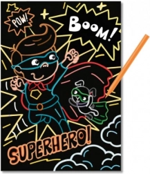A DODO szuperhős kaparós kép ideális választás azoknak a gyerekeknek, akik imádnak alkotni és szeretik a színeket. Elég követni az előnyomott vonalakat, és a kaparó tollal fokozatosan felfedni a ragyogó alapot – az eredmény egy egyedi kép, amely dekorációként is örömet okoz.