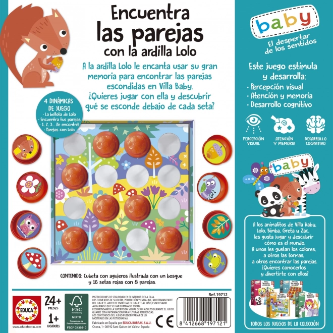 EDUCA Baby Keresd a párokat Lolo mókussal egy oktató játék, amely segít a 24 hónapos kortól gyerekeknek fejleszteni a memóriájukat, motorikus képességeiket és kreativitásukat páros képek keresésével.