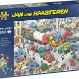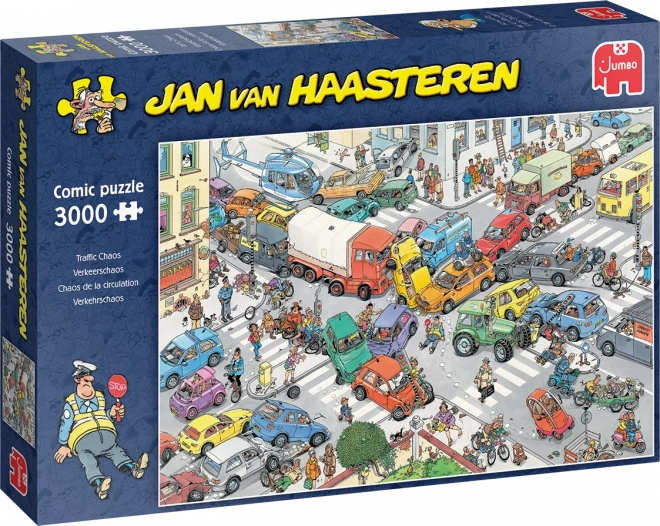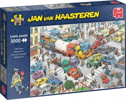 Fedezze fel Jan van Haasteren vicces illusztrációinak világát – színes, dinamikus és aprólékosan kidolgozott. A Közlekedési káosz motívum tele van geggel, felfordult helyzetekkel és meglepetésekkel, amelyek minden újabb ránézéskor megnevettetik. A 3000 darab remek kihívás gyakorlott kirakók számára, de családi projektnek is kiváló.