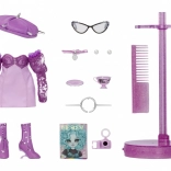 A megálmodott barett kalapoktól, szemüvegektől a lila ruhákig és csillogó fésűig minden részlet gondosan van megtervezve a stílus variálhatóságának érdekében. A készlet különféle elemeket tartalmaz, amelyek megfelelnek különféle stílusbeli igényeknek, és lehetővé teszik egyedi megjelenések kialakítását.