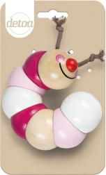 Detoa Rózsaszín Hernyó Tea egy interaktív, színes játék fából készült formákból, melyek gumira vannak fűzve, mozgathatóak, forgathatóak és hajlíthatóak. Ideális a gyerekek finom motorikájának fejlesztésére 6 hónapos kortól.