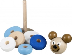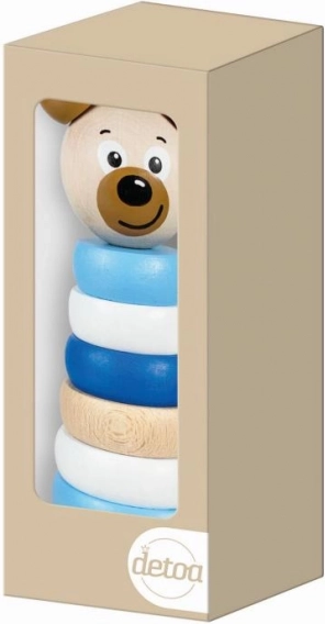 Fedezze fel a varázst ezzel a kék színű Medve mintás fa rakodó piramissal, amely fejleszti a gyermekek képzeletét, logikai gondolkodását és motoros képességeit. EKO természetes csomagolásban szállítva.