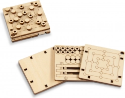 A kis fa játéktábla elfér a tenyérben és a zsebben is. Ideális utazáshoz, iskolába vagy munkába – egy gyors parti bármikor, amikor van egy kis idő.