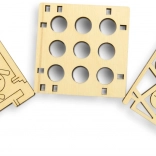 Az összeállítás ragasztó és szerszám nélkül történik, az elemek pontosan illeszkednek. A csomag része egy praktikus doboz, hogy egyetlen kereszt vagy kör se vesszen el. A játékot meghagyhatod természetes kivitelben, vagy kiszínezheted filccel vagy festékkel pontosan a saját stílusod szerint.