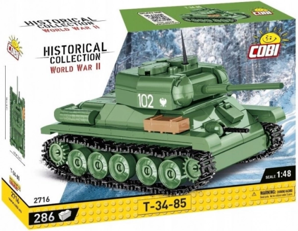 A T-34-85 modell a szovjet fegyveres erők kulcsfontosságú harckocsija volt a második világháború alatt, köszönhetően egyszerű szerkezetének, ami könnyű gyártást és karbantartást tett lehetővé. Ez a modell a keleti lengyel fegyveres erőknek van szentelve, és a 102-es jellegzetes számmal érkezik, ami örömet okoz a harckocsi rajongóknak.