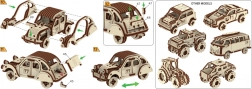 Ez a rallyautó-modell a kreatív szórakozás és az elegáns lakásdekor ütős kombinációját kínálja. Az első osztályú nyírfa rétegelt lemezből készült elemek pontosan illeszkednek – ragasztó és csavarok nélkül –, az eredmény pedig egy lenyűgöző retró autó számos apró részlettel.