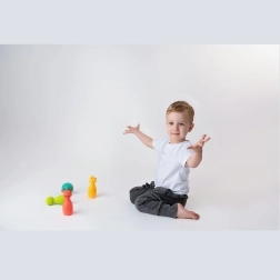 A bábukkal való játék támogatja a motorikus készségek fejlődését, az ok-okozati összefüggések megértését és a játék első szabályainak elsajátítását. A gyerekek a labdát guríthatják, dobhatják, célba vehetik a bábukat, vagy saját akadálypályákat alkothatnak – remek választás aktív beltéri játékhoz sérülésveszély nélkül.