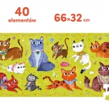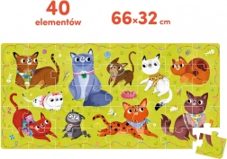 A CzuCzu bájos, cicás puzzle-je örömet szerez az állatokat kedvelő, 3 évesnél idősebb gyerekeknek. A készlet 40 strapabíró darabot tartalmaz, amelyekből 66 × 32 cm méretű kép állítható össze. A kirakás közben a gyerekek természetes módon fejlesztik a finommotorikát, a koncentrációt és a figyelmet, miközben megismerik a színeket és formákat is.