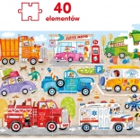Fedezd fel a járművek színes világát a CzuCzu Moto Autók kirakóval! A nagy, 40 darabos puzzle tele van autókkal, teherautókkal és munkagépekkel akcióban, fejleszti a finommotorikát, a figyelmet és a képzelőerőt. Ideális ajándék kis motorrajongóknak – szórakozás és tanulás egyben otthon, óvodában és utazás közben is.