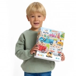 Brumm, brumm – csatoljátok be az öveket, indulunk! A CzuCzu Moto puzzle Autók minden kis út- és géprajongónak örömet okoz. A nagy méretű, 40 darabos kirakó különféle autókat, teherautókat és munkagépeket mutat mozgásban, így a gyerekek könnyen megtalálják a kedvencüket.