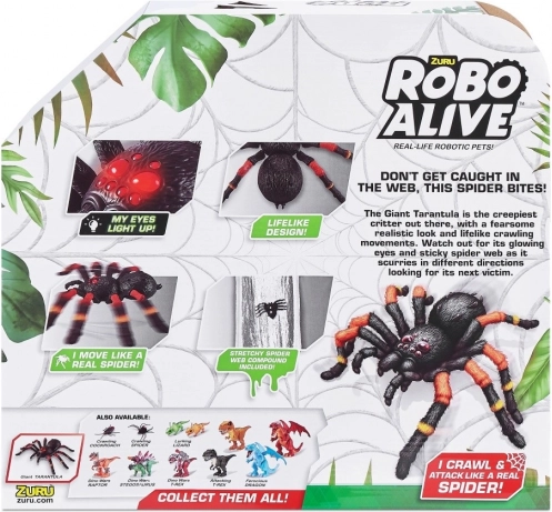 Robo Alive Tarantula valósághű élményt nyújt minden rémisztő játék szerelmesének. Fejlett technológiája sima és félelmetes mozgásokat tesz lehetővé, amelyek meglephetik és szórakoztathatják barátaidat és családodat.