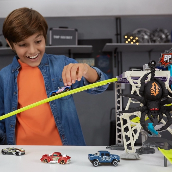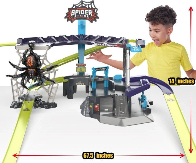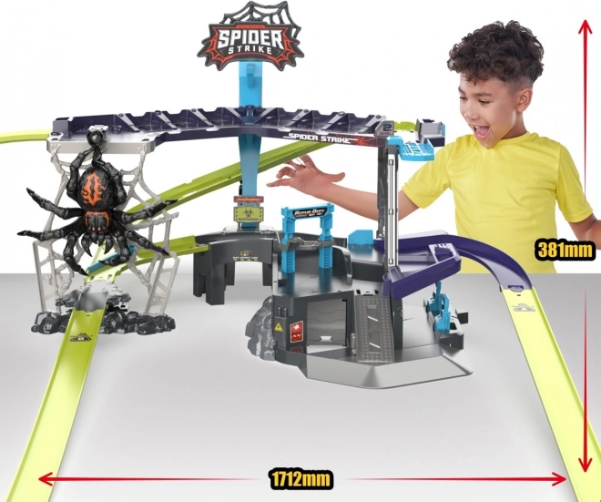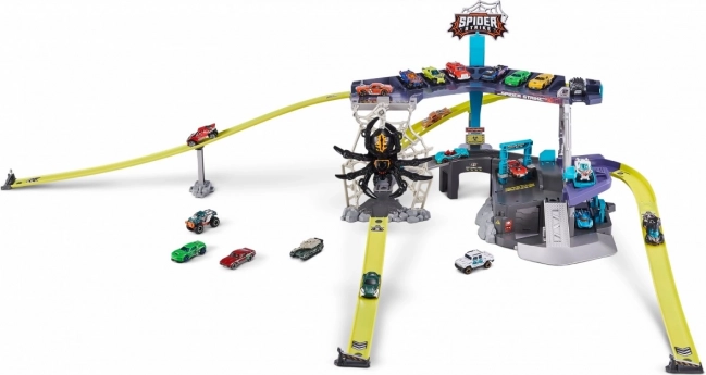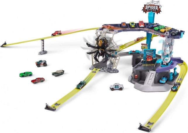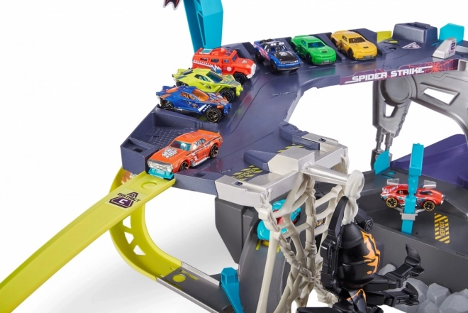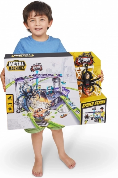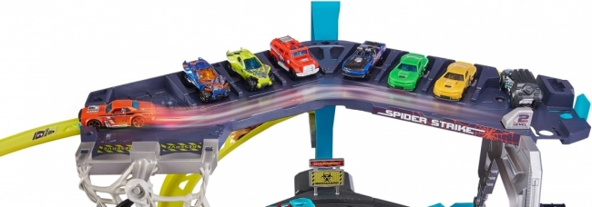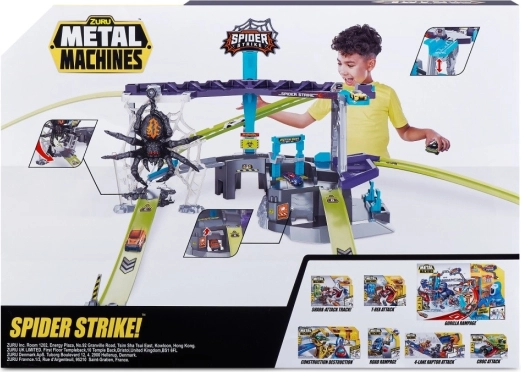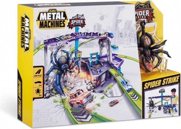 Lépjetek be a kaland világába a lenyűgöző ZURU Metal Machines: Pók Támadás autópályával. Ez az interaktív játékkészlet új szintre emeli a játékot. Hívjátok ki a pókot, amely a hálóján hintázik, és a Metal Machines csapat részeként győzzétek le!