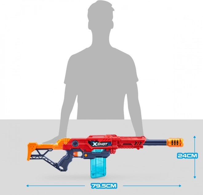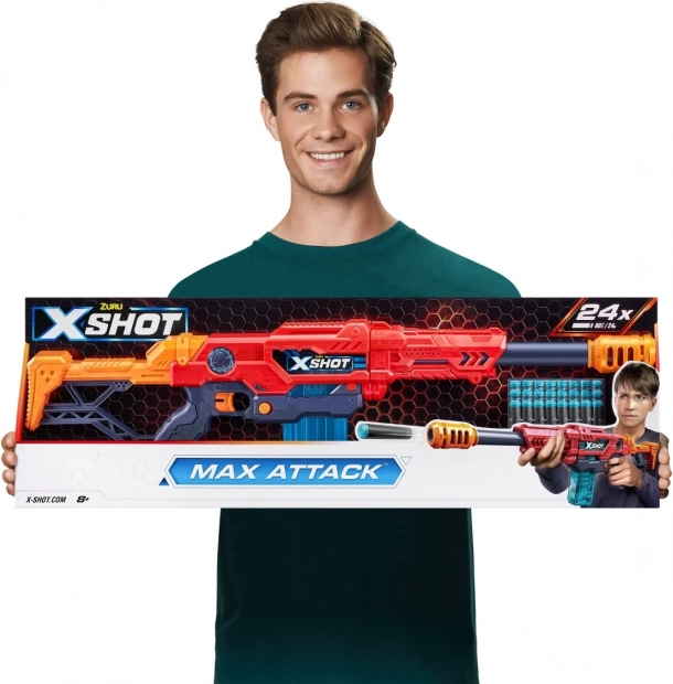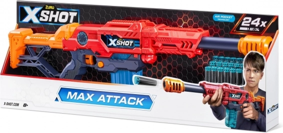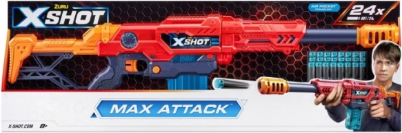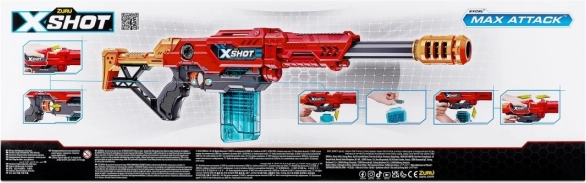 A X-Shot Excel Max Attack játékfegyverrel precíziós és izgalmas akciók várják a gyermekeket a szabadban. A 24 méter távolságig elérő lövések új stratégiák és taktikák kialakítását teszik lehetővé az aktív játék során. Maximalizáld a pontosságot az új X-Shot Excel Max Attack játékfegyverrel! A blaster 10 lövést tartalmazó tárat foglal magában, és a készlet része 24 hablövedék.