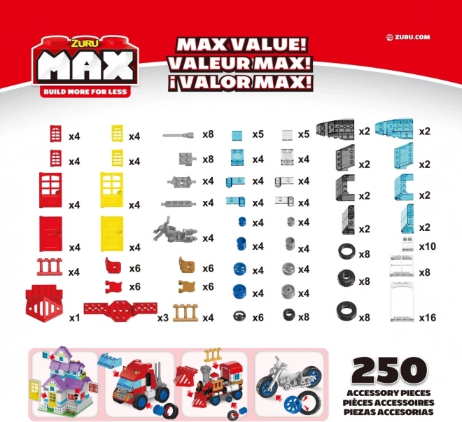 - A ZURU Max kockák kompatibilisek a vezető építőkészlet-márkákkal.