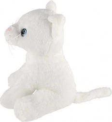 A 15 cm-es, aranyos, fehér plüss cica puha játszó- és alvótárs ölelgetéshez, játékhoz és elalváshoz. Gombnyomásra hangokat ad ki, amelyek örömet szereznek a gyerekeknek és támogatják érzékszervi fejlődésüket. Születéstől (0+) ajánlott a puha anyagnak és a biztonságos kivitelnek köszönhetően.