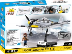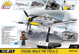 Ez az egyutas, egyszemélyes harci repülőgép híres az erős BMW 801 D-2 motorjáról és kivételes tulajdonságairól, beleértve a kiegészítő fegyverrendszer alkalmazását. A Focke-Wulf FW 190 A-3 építőkészlet hű másolata a repülőgépnek 1:32 méretarányban, amelyet könnyű összeszerelni 382 kiváló minőségű COBI építőkockából. A repülőgép állami színei pontosan kidolgozott részletekkel kelnek életre.