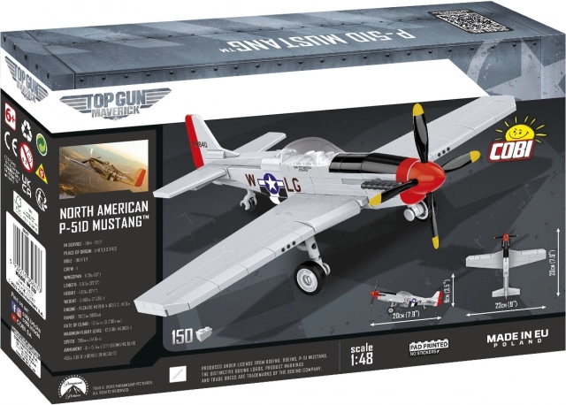 Ez a P-51D Mustang repülőgépmodell 150 db COBI építőkockából készült 1:48 méretarányban. A készlet csak kiváló minőségű nyomatokat tartalmaz, amelyek a filmes gép festésére utalnak. Ez a licencelt Mustang nemcsak remek filmes emléktárgy, hanem olyan modell is, amely több gyűjteményt is megkezdhet.