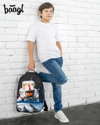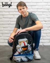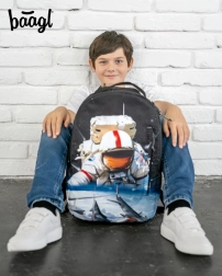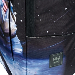 A hátizsák egyedi megjelenést kínál űrhajós ábrázolással az űrben, amely minden helyzetben kitűnik.