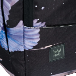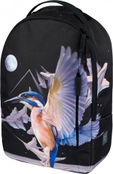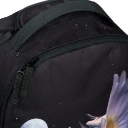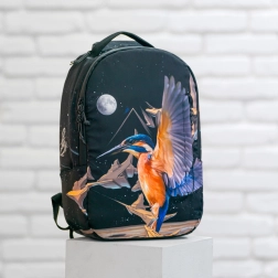 A hátizsák dizájnját repülő jégmadár motívuma, absztrakt formák és a hold díszíti. Ez a feltűnő minta a hátizsákot a figyelem középpontjába helyezi.