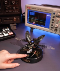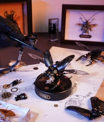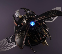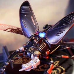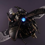 Ez a kifinomult szarvasbogár-modell egy csipetnyi fantáziaműhellyé varázsolja munkaterületét. Precízen megtervezett alkatrészei és minőségi anyagai látványos steampunk megjelenést adnak, miközben a motor mozgásba hozza a fém membrános szárnyakat és a mechanikus befogó állkapcsokat. Az integrált energiaszint-jelző fény kiemeli a modell technikai karakterét.