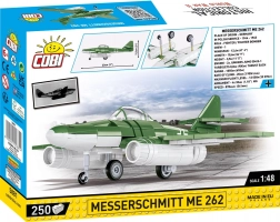 A Messerschmitt Me 262 a világ első harcban bevetett sugárhajtású vadászrepülőgépe volt. Ebben a COBI készletben 1:48 méretarányban építheted meg, amely illik a nagy bombázókhoz. A modell kb. 23 cm hosszú és 26 cm szárnyfesztávolságú, kiemelkedik realisztikus részleteivel, nyomataival és a levehető futómű funkcióval.